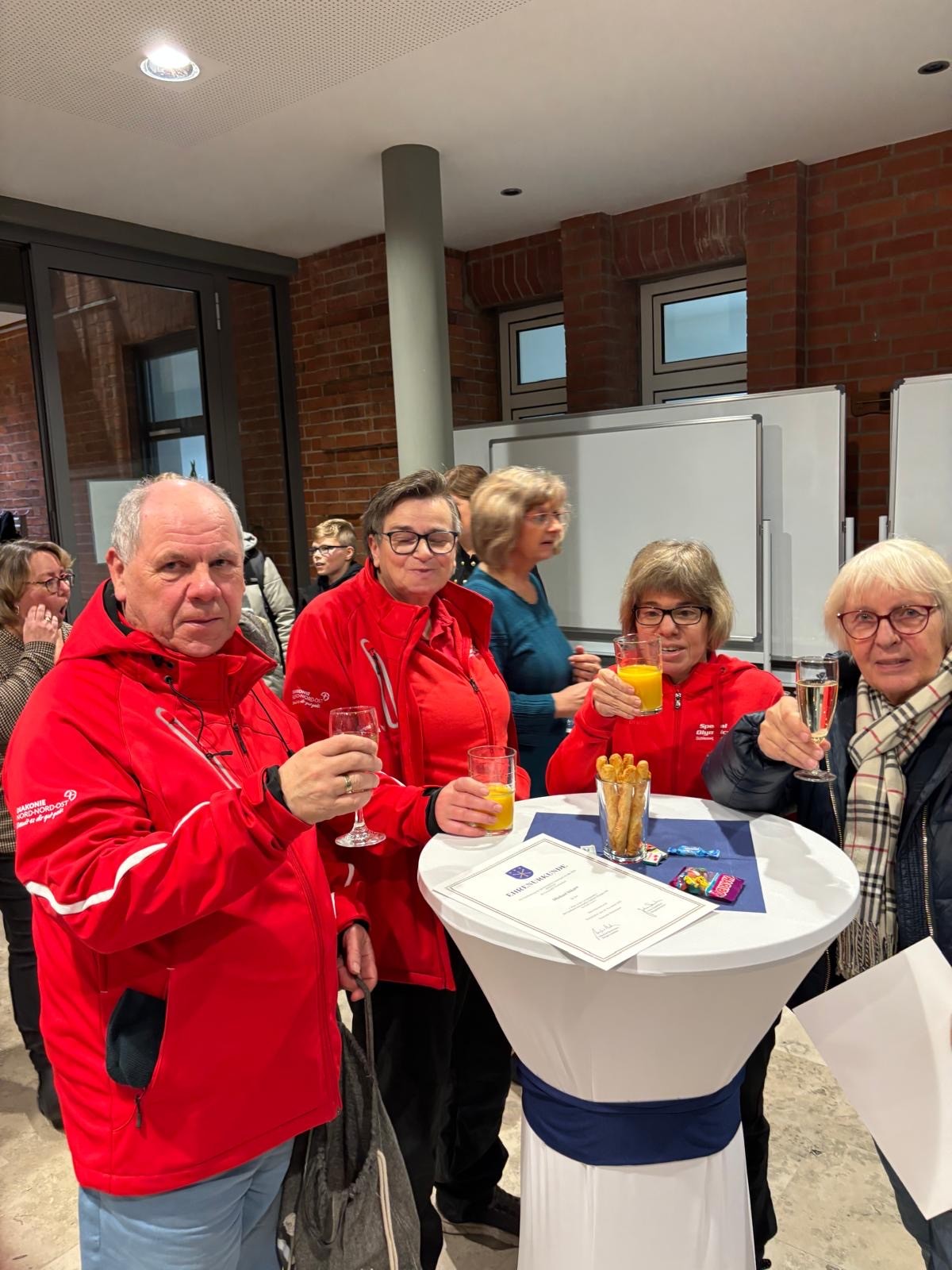 Die Bürgermeisterin, Julia Samtleben und der Bürgervorsteher, Manfred Beckmann überreichten die Ehrenurkunden der Gemeinde Stockelsdorf an die 3 Sportler unserer Inklusionsgruppe "Curauer Löwen", alle aus der Diakonie Nord Nord Ost. Daniela Hanke, Stefanie Lutz und Michael Dikow.